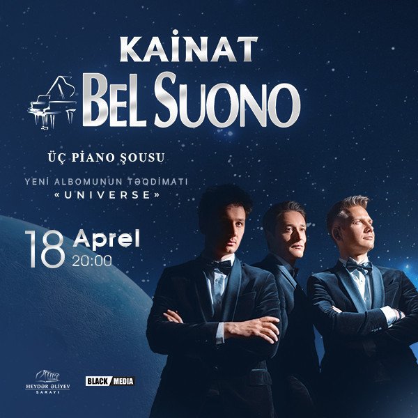 18 апреля на сцене Дворца Гейдара Алиева состоится выступление знаменитого фортепианного трио – шоу трех роялей Bel Suono с концертной программой «Вселенная». Организатор концерта — Black media.