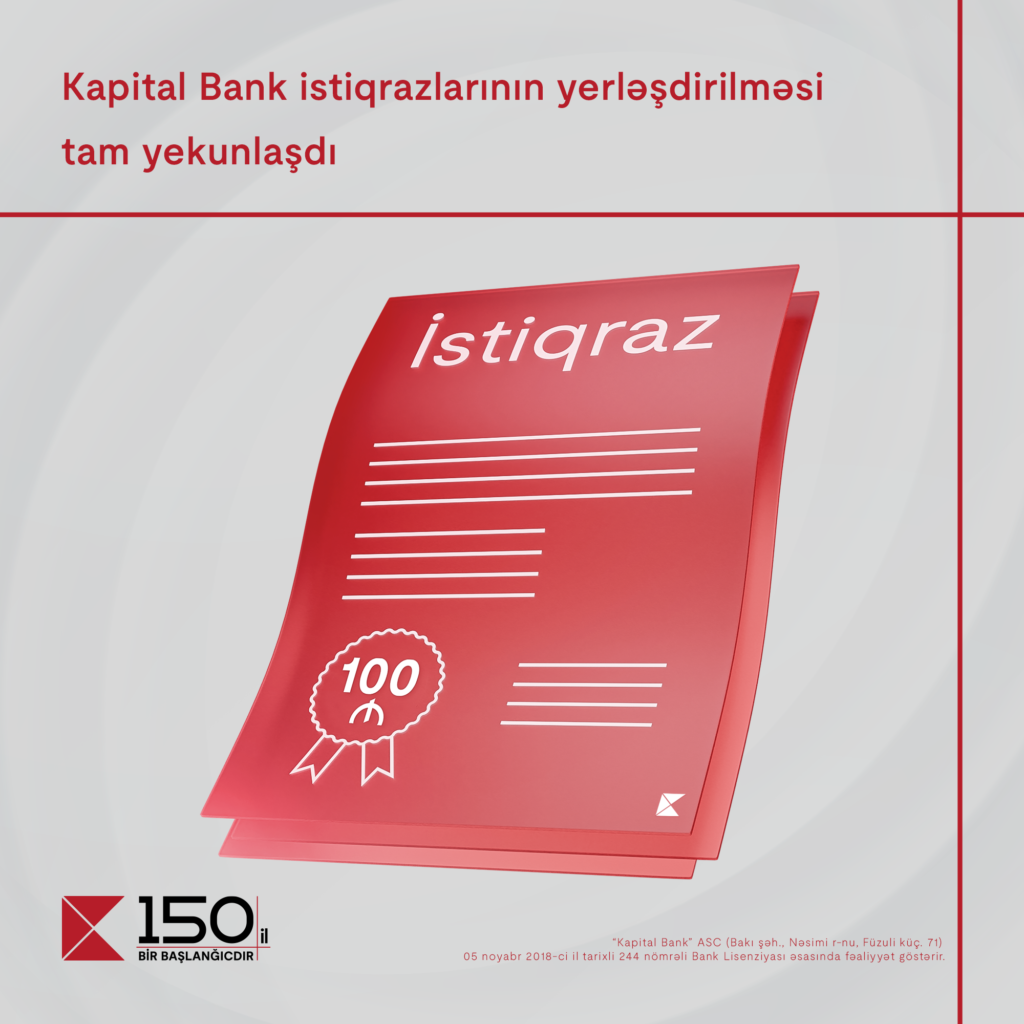 Как мы уже сообщали, 2-й транш эмиссии облигаций Kapital Bank на сумму 50 000 000 (пятьдесят миллионов) манатов при общем размере в 100 000 000 (сто миллионов) манатов был включен в листинг в премиальном сегменте рынка. 27 июня 2024 года было завершено размещение указанных облигаций на Бакинской фондовой бирже по подписке. В размещении приняли участие 39 инвесторов, 32 из которых были физические, а 7 юридические лица.