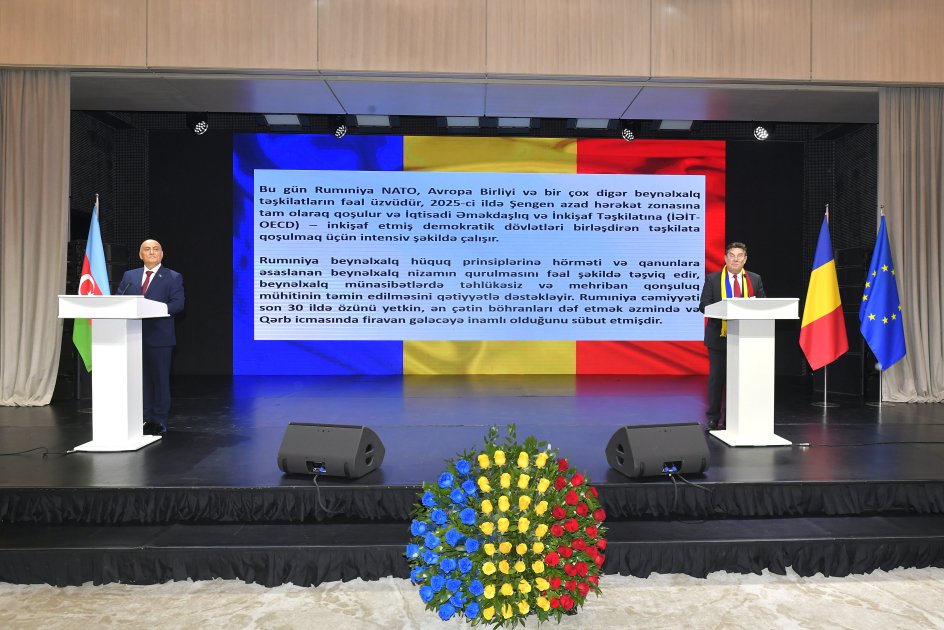 Говоря о дружественных отношениях между Азербайджаном и Румынией, посол подчеркнул, что эти отношения подняты на уровень стратегического партнерства, а сотрудничество в сферах политики, экономики, энергетики, транспорта и гуманитарной области развивается динамично. Он особо отметил проект «Зеленый энергетический коридор», транспортные маршруты по Черному морю и рост двусторонних торговых связей как показатель крепкого диалога между двумя странами.