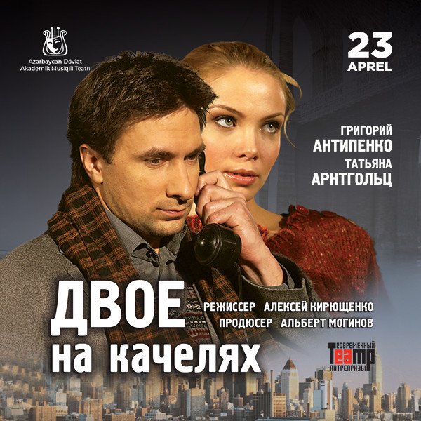 23 апреля на сцене Азербайджанского Государственного Академического Музыкального Театра в Баку состоится показ легендарного бродвейского спектакля «Двое на качелях» (Two for the Seesaw) — бессмертной истории о любви, одиночестве и выборе по пьесе Уильяма Гибсона.