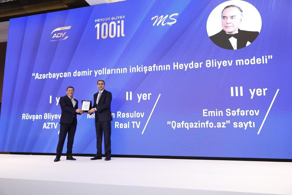 Ulu Öndər Heydər Əliyevin dəmir yollarının inkişafındakı xüsusi xidmətlərinə həsr olunmuş yaradıcılıq müsabiqəsində 39 nəfər peşəkar jurnalist təltif olunub.