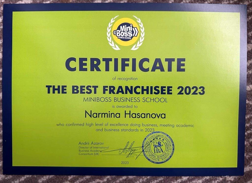 Bundan başqa, dünyada 73 filialı olan “Miniboss Business School”un Azərbaycanda təsisçisi Nərminə Həsənova 2023-cü ilin ən yaxşı franşıza sahibi adına layıq görüldü.