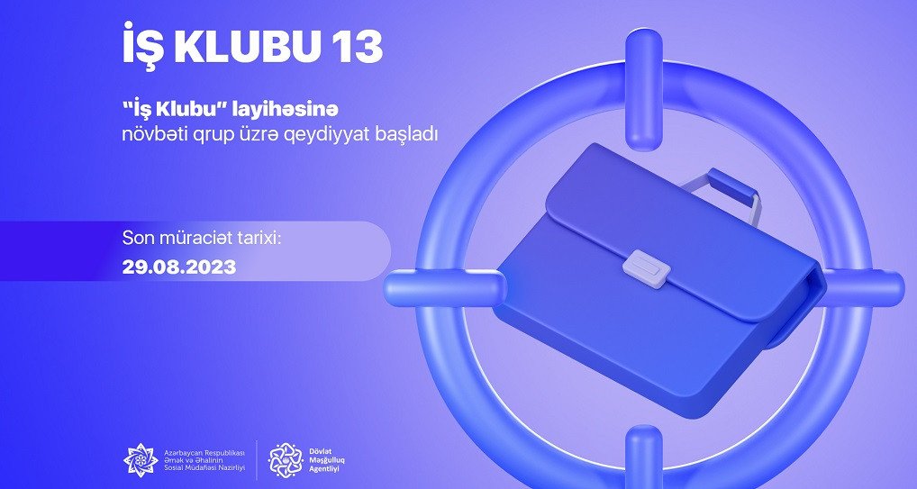 Əmək və Əhalinin Sosial Müdafiəsi Nazirliyinin tabeliyində Dövlət Məşğulluq Agentliyinin Mərkəzi Karyera filialı tərəfindən keçirilən “İş Klubu 13” layihəsinə qeydiyyat başlayıb.