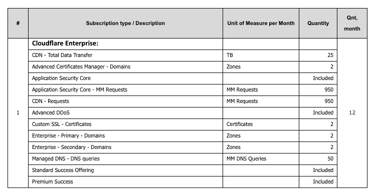 Cloudflare Enterprise domen, bir illik, qeyd olunanların lisenziya uzadılması.