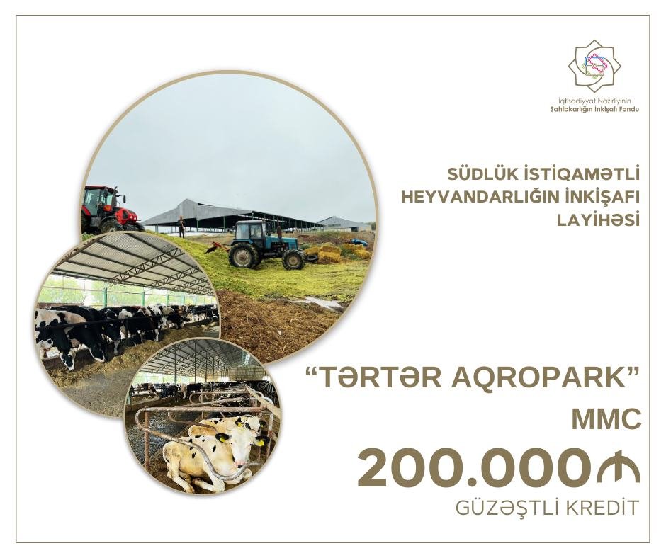 “Tərtər Aqropark” MMC Sahibkarlığın İnkişafı Fondundan südlük istiqamətli heyvandarlığın inkişafı layihəsi üzrə 200 min manat güzəştli kredit əldə edib.