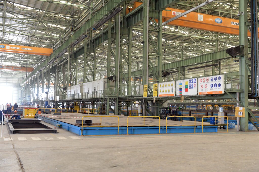 Zavoddakı böyük qurğulardan biri də 300 tonluq krandır. Kranın hərəkət eni 80 metrə qədərdir. Müxtəlif qaldırma gücündə olmaqla, kranın 4 ədəd yükqaldırma qarmağı mövcuddur.