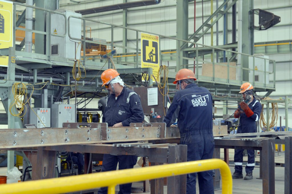 Bakı Gəmiqayırma Zavodunun Layihə istehsalat meneceri Hasib Talıbov deyir ki, zavod 72 hektar sahədən ibarətdir. Onun 50 hektarında istehsalat işləri aparılır. İstehsalat işləri ilk olaraq, polad lövhələrdən gəmi gövdə konstruksiyalarının hazırlanması ilə başlayır. Polad lövhələr anbar tərəfindən qəbul olunur, ilk astarlama – qoruyucu boya çəkildikdən sonra işlər gövdə sahəsinə ötürülür. Gövdə sahəsində gəmi gövdəsinin yastı panelləri və digər mürəkkəb konstruksiyaları yığılaraq blok halına gətirilir. Gəmi gövdə blokları gövdə sahəsindən çıxarılaraq boyama kamerasına aparılır. Orada boyandıqdan sonra sahədə gövdə blokları bir-biri ilə birləşdirilir. Bu birləşdirilmə zamanı digər quraşdırılma işləri də davam etdirilir. Zavodda gövdə sahəsindən başqa, digər emal sahələri də var. Bu emal sahələri boru emal sahəsi, mexaniki işlər üzrə sahə və elektrik sahəsindən ibarətdir. Boru emal sahəsində qəbul olunan boru materiallarından müxtəlif formalı gəmi sistemlərinə aid borular emal olunur və daşınaraq gəmi blokları daxilində quraşdırılma işləri aparılır. Elektrik sahəsi elektrik quraşdırılma işləri ilə məşğul olur. Bura kabellərin çəkilməsi, elektrik avadanlıqlarının quraşdırılması və sınaqdan keçirilməsi aiddir.