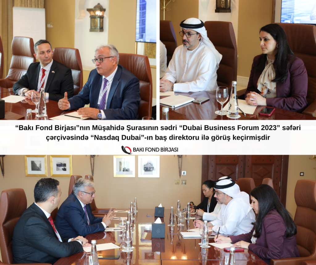 “Bakı Fond Birjası” QSC-nin Müşahidə Şurasının sədri cənab Fərid Axundov Birləşmiş Ərəb Əmirliklərinin (BƏƏ) Dubay şəhərində 1-2 noyabr 2023-cü il tarixlərində təşkil olunan Dubay Biznes Forumu 2023 (Dubai Business Forum 2023) tədbirində iştirak etmişdir.