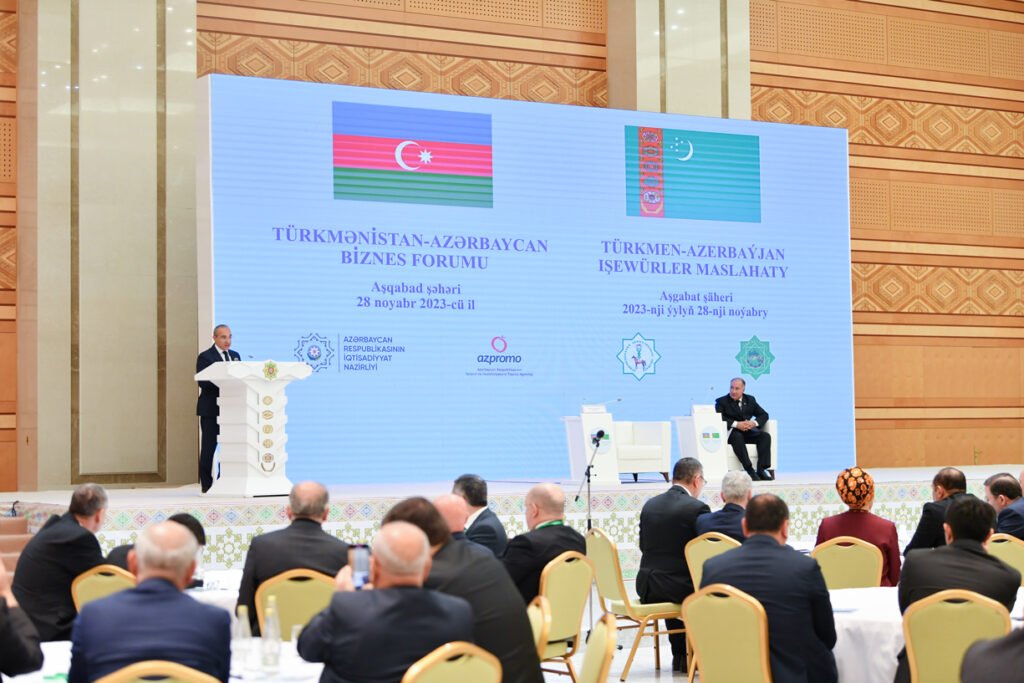 Biznes forumda iqtisadiyyat naziri Mikayıl Cabbarov Türkmənistan və Azərbaycan arasında iqtisadi-ticarət münasibətlərinin yüksələn xətlə inkişaf etdiyini vurğulayıb. Bildirilib ki, investisiyaların təşviqi və qarşılıqlı qorunması, ikiqat vergitutmanın aradan qaldırılması, dövlət əmlakının idarə edilməsi, kiçik və orta sahibkarlıq sahəsində əməkdaşlığa dair mövcud sazişlər davamlı və səmərəli iqtisadi tərəfdaşlıq üçün möhkəm zəmin formalaşdırıb. Türkmənistanla ticarət əlaqələrinin təşviqi müsbət nəticələr verir. Dost ölkə ilə investisiya əməkdaşlığı da genişlənir. Qarşılıqlı sərmayə qoyuluşu üçün münbit şərait var. Ticarət və investisiya sektorlarında dayanıqlı müsbət dinamikanın təmin olunması üçün ölkələrimizin işgüzar dairələri qarşılıqlı investisiya layihələrində fəal olmalıdırlar. Perspektivli sahələrdən olan enerji, sənaye, nəqliyyat-logistika, kənd təsərrüfatı, rəqəmsal transformasiya, Ələt Azad İqtisadi Zonası, Bakı Beynəlxalq Dəniz Ticarət Limanı və digər istiqamətlər üzrə tərəfdaşlıq önəmlidir. Forumda Azərbaycanın əlverişli biznes və investisiya mühiti, sənaye zonalarının, azad edilmiş ərazilərimizdə iqtisadi reinteqrasiyanın investorlar üçün yaratdığı imkanlar barədə məlumat verilib, Türkmənistan sərmayədarları ölkəmizin biznes fürsətlərindən fəal şəkildə yararlanmağa dəvət olunub.