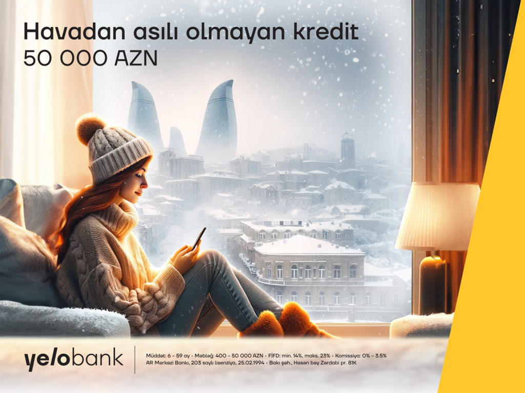 Təcili kredit lazımdırsa, Yelo Bank havadan asılı olmayan tam onlayn kredit təklif edir. Bunun üçün Yelo Bank müştərisi olmaq da tələb olunmur. İstənilən şəxs yalnız Yelo App mobil tətbiqini yükləyərək tam onlayn kredit ala bilər.
