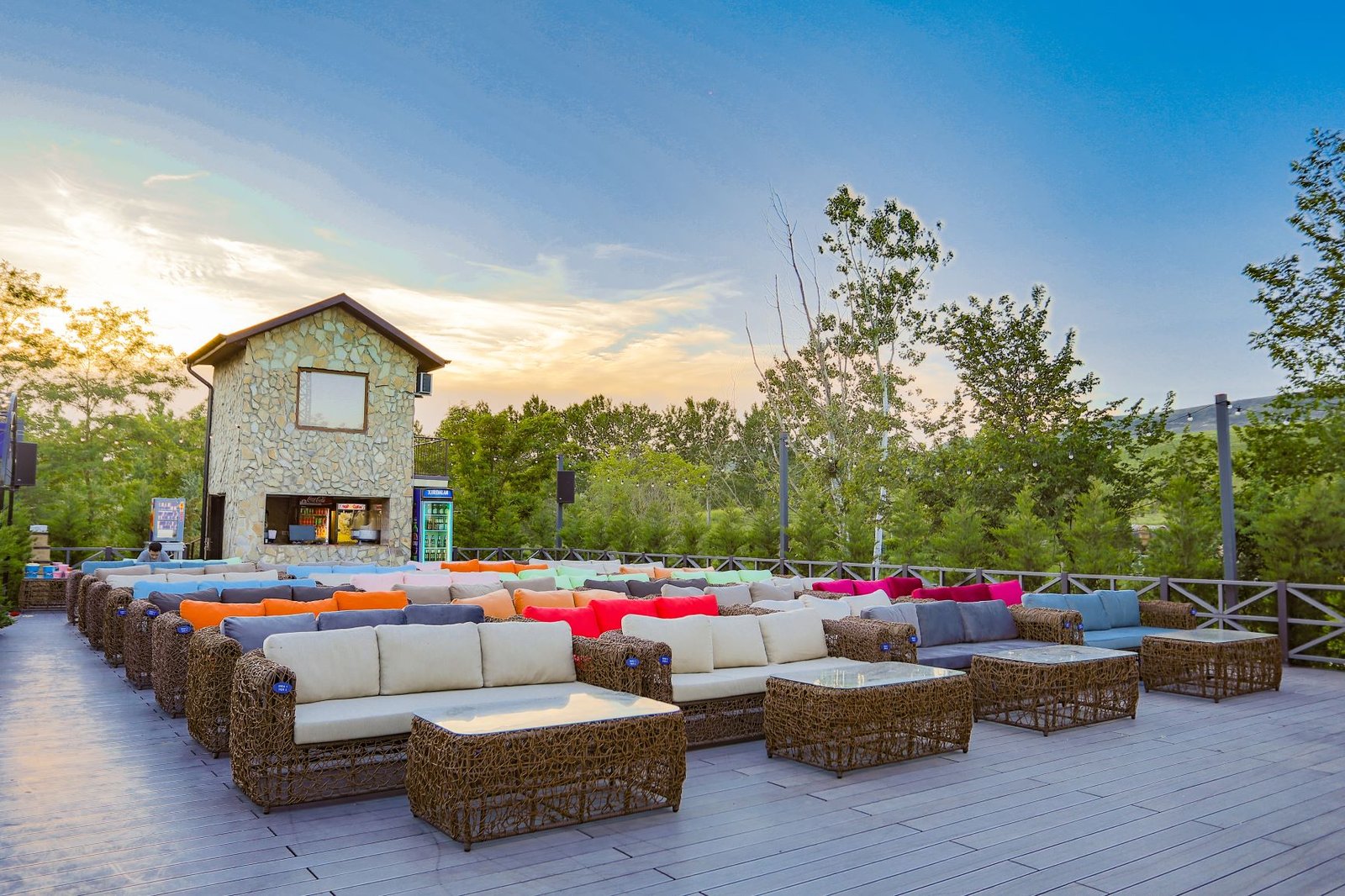 Hər həftənin sonu: 5, 6 və 7-ci günlər və bayram günlərində qonaqlar açıq havada yeni filmləri izləyə bilərlər.