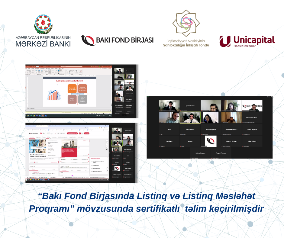 6 mart 2024-cü il tarixində Azərbaycan Respublikasının Mərkəzi Bankı, Bakı Fond Birjası, Azərbaycan Respublikasının Sahibkarlığın İnkişafı Fondu və Unicpital İnvestisiya şirkəti tərəfindən yerli şirkətlər üçün “Qiymətli kağızların buraxılışı, Bakı Fond Birjasında listinq və Listinq Məsləhət Proqramı” mövzularında onlayn sertifikatlı təlim keçirilmişdir.