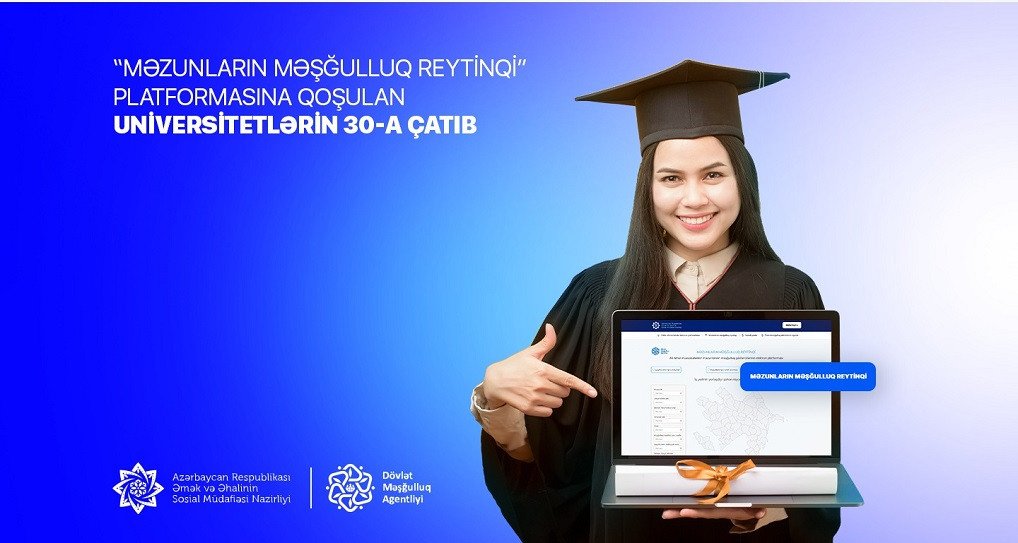 Əmək və Əhalinin Sosial Müdafiəsi Nazirliyinin tabeliyində Dövlət Məşğulluq Agentliyi tərəfindən hazırlanan “Məzunların məşğulluq reytinqi” platformasında məzunlarının göstəriciləri yerləşdirilən universitetlərin sayı 30-a çatıb.