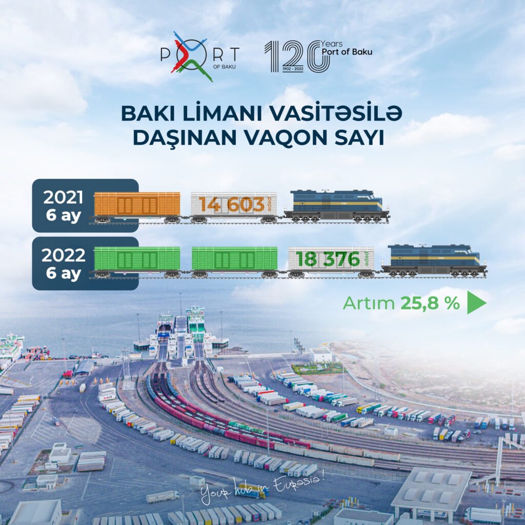 Bu ilin ilk 6 ayı ərzində digər növ yüklərdə olduğu kimi Bakı Limanı vasitəsilə daşınan vaqonların sayında da ciddi artım müşahidə edilib. Belə ki, əgər ötən ilin ilk altı ayı ərzində Bakı Limanında 14 603 ədəd vaqon daşınmışdısa, bu ilin eyni dövründə bu göstərici 25,8 % artaraq 18 376 ədəd olub.
