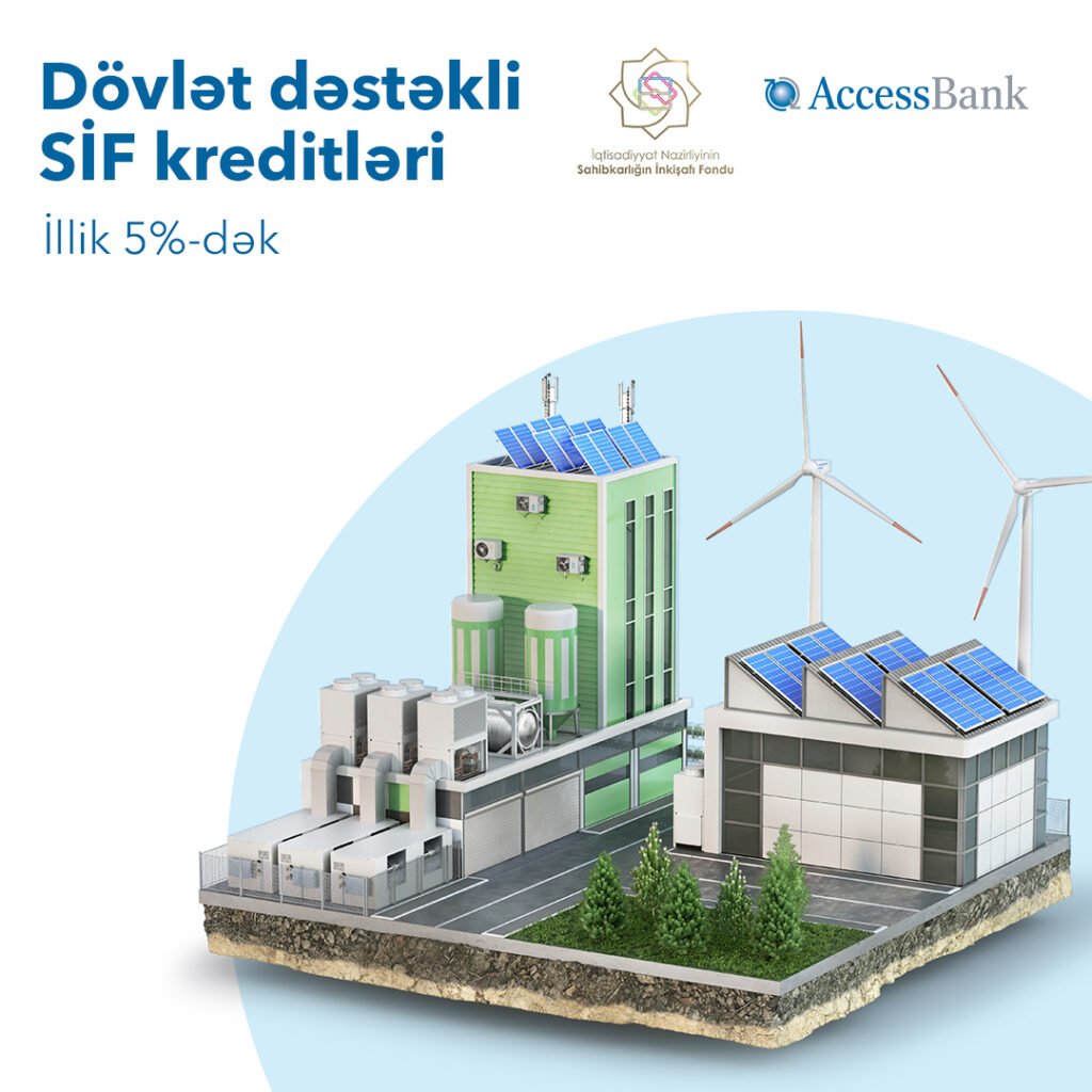Azərbaycanda mikromaliyyələşdirmə lideri olan AccessBank bizneslərin inkişafına yardım etməkdə davam edir. AccessBank-a müraciət edərək, Sahibkarlığın İnkişafı Fondunun təqdim etdiyi biznesə dəstək kreditlərini əldə etmək mümkündür. SİF kreditlərinin əsas şərtləri: