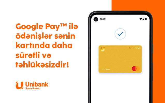 Unibank məhsul və xidmətlərində davamlı texnoloji yeniliklər tətbiq etməklə, ölkənin ən innovativ bankları siyahısındadır. Daim müştərilərinin istəklərini reallaşdıran bank, daha bir təmassız ödəniş imkanını kart istifadəçilərinə təqdim edib. Android telefonları, planşetləri və ya saatları ilə ödənişlər etməyə imkan verən “Google Pay™” xidməti artıq “Unibank”da! Elə indi UCard və Leo kartlarını UBank-da “Google Wallet™”a əlavə edərək, sürətli, təmassız və təhlükəsiz ödənişlər edə bilərsiniz. “Google Pay™” istifadəçiləri ödəniş kartını başqasına vermədən, ödəniş terminalının düymələrinə toxunmadan və nağd pulu əldən-ələ ötürmədən, ödəniş etmək imkanını qazanırlar. Hər bir əməliyyatın təhlükəsizliyi innovativ texnologiyalarla təmin olunur.