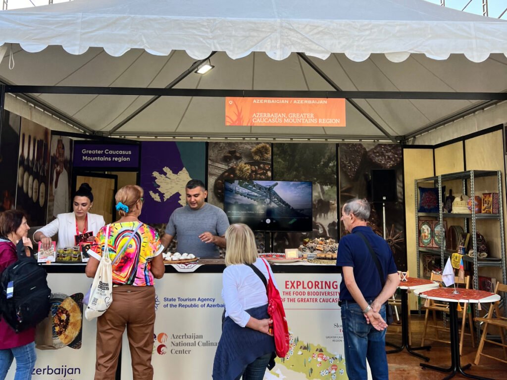 Dövlət Turizm Agentliyi və tabeliyindəki Azərbaycan Milli Kulinariya Mərkəzinin nümayəndələrinin iştirakı ilə milli stenddə Böyük Qafqaz Dağları üzrə “Slow Fud” səyahət turizm marşrutu, qastronomik turizmdə “Slow Fud” turizm modelinin tətbiqi, yerli biomüxtəlifliyin qorunması üçün atılan addımlar haqqında məlumat verilib.