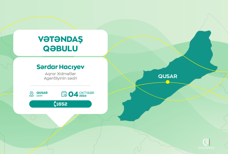 Azərbaycan Respublikasının kənd təsərrüfatı naziri Məcnun Məmmədovun imzaladığı əmrə əsasən, Aqrar Xidmətlər Agentliyinin sədri Sərdar Hacıyev 2024-cü il oktyabrın 4-də, saat 10:00-da Qusar Dövlət Aqrar İnkişaf Mərkəzinin inzibati binasında vətəndaşları qəbul edəcək.