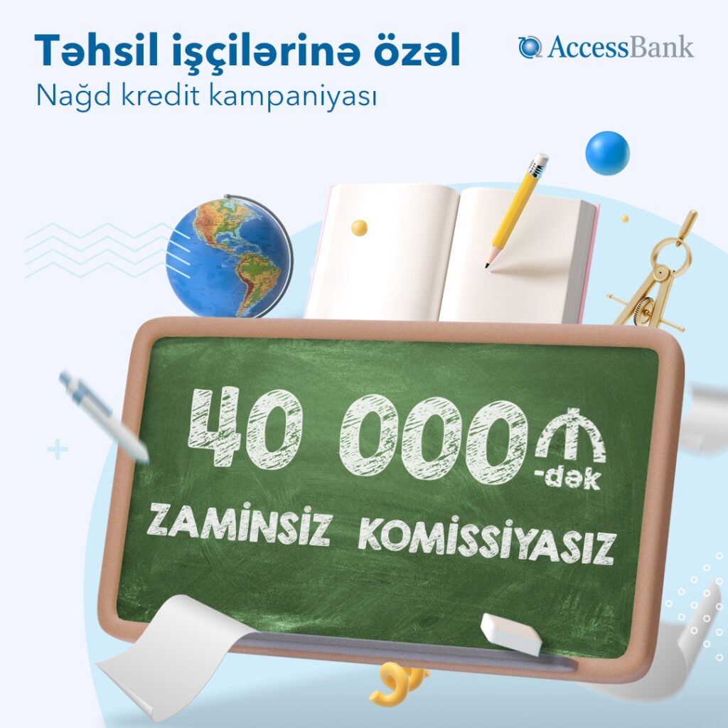 AccessBank 5 oktyabr Beynəlxalq Müəllimlər Günü münasibətilə yeni nağd kredit kampaniyasına start verir. Oktyabr ayını əhatə edən kampaniya çərçivəsində təhsil işçiləri 40.000 AZN-dək nağd krediti AccessBank-dan komissiyasız, zaminsiz və 48 ayadək əldə edə bilərlər.
