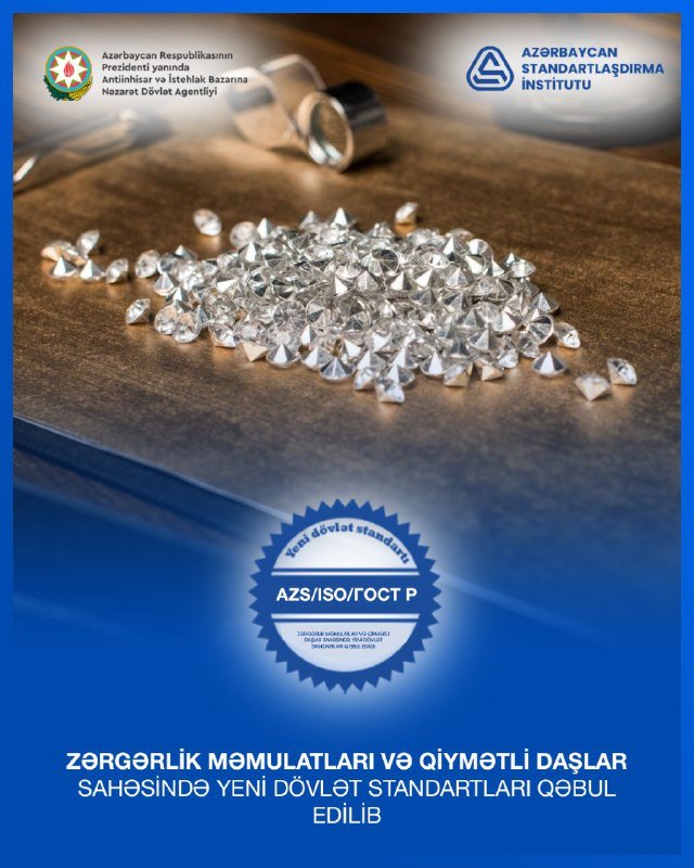 Azərbaycan Respublikasının Prezidenti yanında Antiinhisar və İstehlak Bazarına Nəzarət Dövlət Agentliyinin tabeliyində olan Azərbaycan Standartlaşdırma İnstitutu (AZSTAND) tərəfindən AZS 979:2025 (ГОСТ Р 71116-2023) “Qiymətli daşlar. Terminlər və təriflər”, habelə AZS ISO 15096:2025 “Zərgərlik məmulatları və qiymətli metallar – Yüksək saflıqlı gümüşün təyini – ICP-OES üsulundan istifadə olunmaqla fərqlər üsulu” yeni dövlət standartları qəbul edilib.