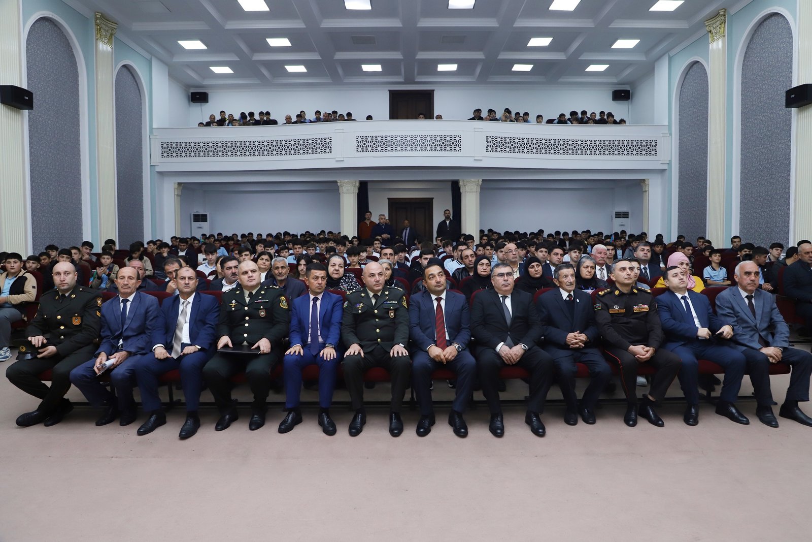Tədbirdə çıxış edən SHXÇDX-nın Çağırışaqədərki hazırlıq idarəsinin rəisi polkovnik-leytenant Füzuli İsmayılov müharibə zamanı gənclərin vətənpərvərliyindən, sabahın əsgəri olacaq çağırışçıların fiziki və psixoloji statuslarının yüksək səviyyədə saxlanılması istiqamətində həyata keçirilən tədbirlər barədə danışıb, həmçinin ölkəmizdə 2025-ci ilin “Konstitusiya və Suverenlik İli” elan edilməsi ilə əlaqədar geniş məlumat təqdim edib.