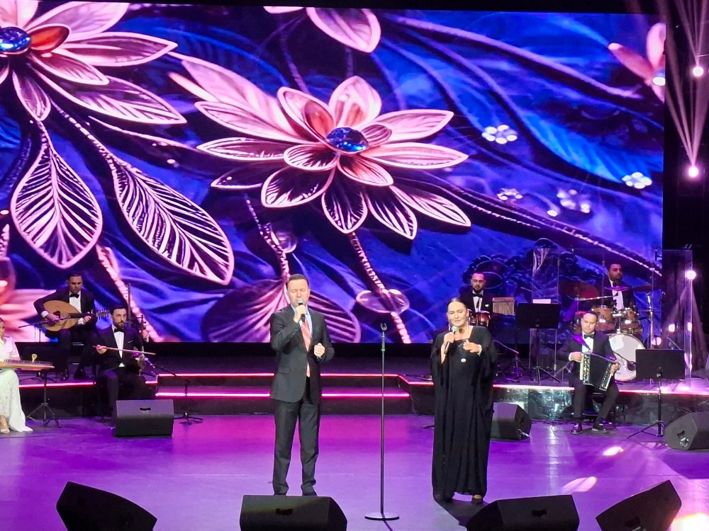 Tamaşaçılar həmçinin səhnədə “Xaqan” instrumental ansamblın canlı müşaiyəti ilə ekranda mərhum sənətkarın ifasının şahidi oldular.