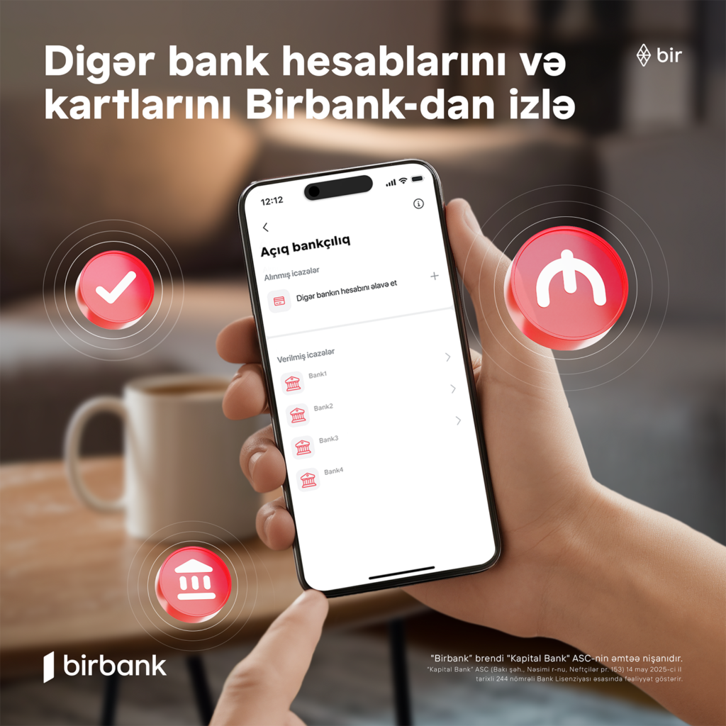 Artıq Birbanklılar “Açıq bankçılıq” platformasına qoşulan digər banklardakı hesablarını da öz mobil tətbiqlərindən rahatlıqla görə bilərlər. Bununla da Birbank müştəriləri bütün maliyyə əməliyyatlarını bir mərkəzdən izləmək imkanı, eləcə də rahat və asan nəzarət mexanizmi qazanmış olurlar.