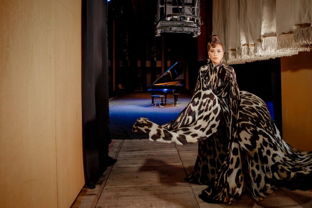 Sənətçi bu dəfə leopard tərzi ilə kameralar önünə keçib. Tanınmış dizayner Orxan Sultan fotosessiya üçün xüsusi geyim hazırlayıb. O, dünyaca məşhur “İv Sen-Loran” markasına müraciət edib. İncə ipək parçadan, gözoxşayan detalları ilə zəngin olan geyim maraqla qarşılanılıb.