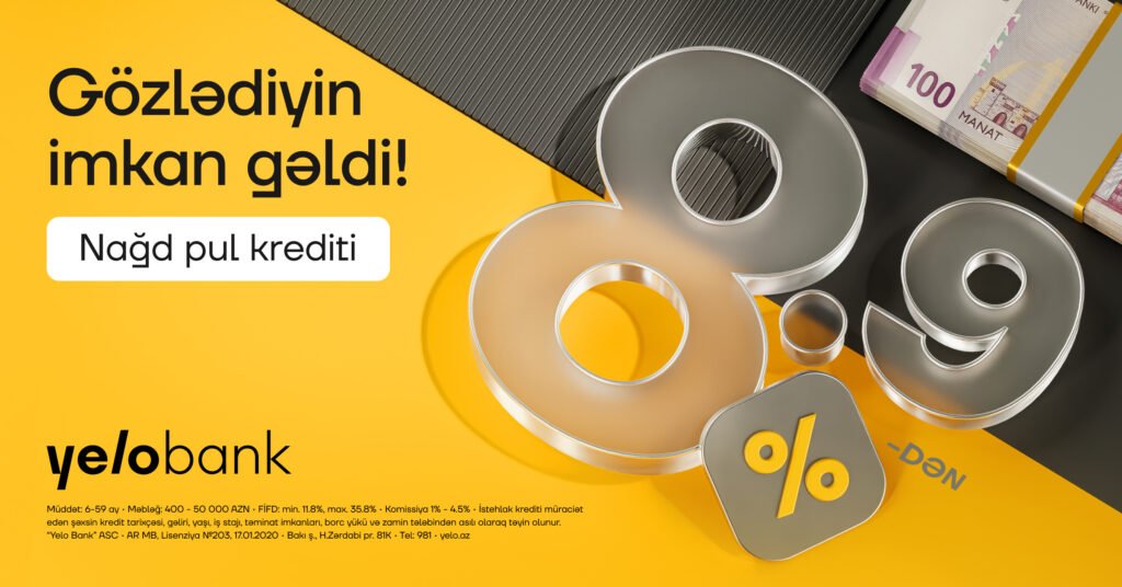Yelo Bank-da kredit faizləri artıq 8.9%-dən başlayır!