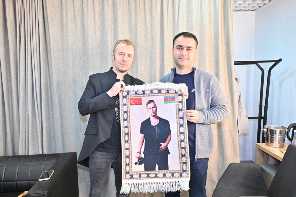 “Anadolu events” şirkətinin təsisçisi Eyyub Hüseynzadə ənənəyə sadiq qalaraq Emre Aydına ifaçının rəsmisini əks etdirən xalça hədiyyə edib.