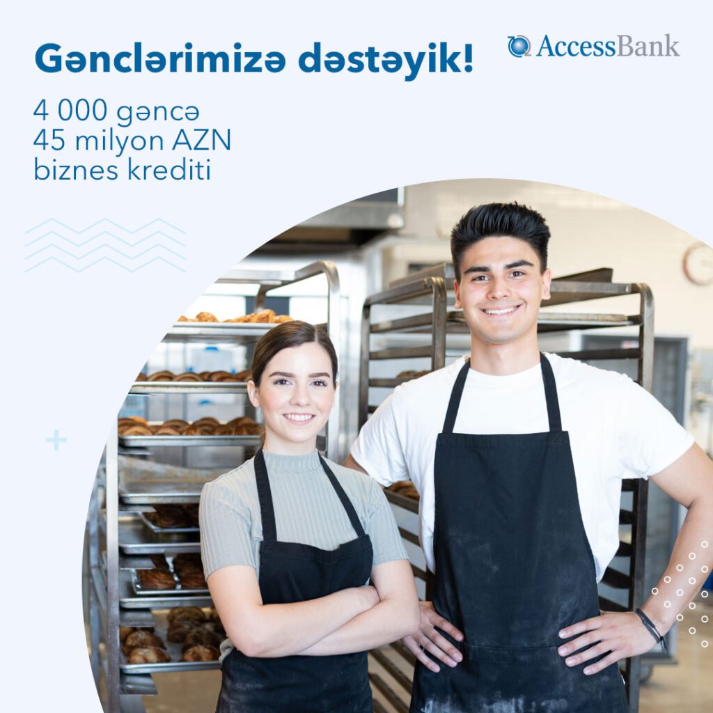 Azərbaycanda mikromaliyyələşdirmə lideri olan AccessBank mikro, aqro, kiçik və orta sahibkarlara dəstək olmaqda davam edir. 20 ildir bizneslərin inkişafına töhfə verən bank həm də gənc sahibkarlar nəslinin formalaşmasına yardım edir. Təkcə 2022-ci ildə AccessBank 18-30 yaş aralığında olan 4 minədək sahibkara ümumilikdə 45 milyondan çox biznes krediti ayırıb.