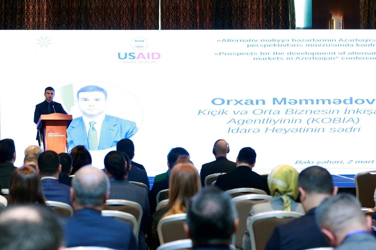 Konfransda açılış nitqi ilə çıxış edən KOBİA-nın İdarə Heyətinin sədri Orxan Məmmədov qeyd edib ki, KOB subyektləri inkişaf etmiş iqtisadiyyatlarda ümumi daxili məhsulun təxminən 50%-ni, inkişaf etməkdə olan iqtisadiyyatlarda isə 35%-ni təşkil edir, ümumi məşğulluğun isə 60-70%-ni təmin edir. Vurğulanıb ki, Azərbaycanda fəaliyyət göstərən biznes subyektlərinin 99%-dən çoxu KOB subyektləridir. Bütün dünyada olduğu kimi Azərbaycanda da sahibkarlar maliyyələşmə mənbəyi kimi banklara üstünlük verirlər. KOB-ların maliyyələşmə imkanlarının genişləndirilməsi və bu sahədə alternativ maliyyə alətlərinin tətbiqi KOBİA-nın fəaliyyətinin prioritetlərindəndir. USAID ilə birgə təşkil edilmiş bugünkü tədbirin məqsədi də məhz KOB-ların maliyyə əlçatanlığının genişləndirilməsi sahəsində beynəlxalq təcrübə və alternativ maliyyə alətlərinin ölkəmizdə tətbiqi imkanlarını müzakirə etməkdir.